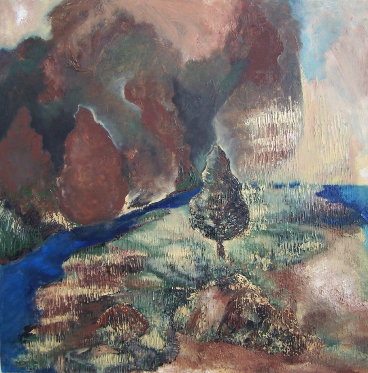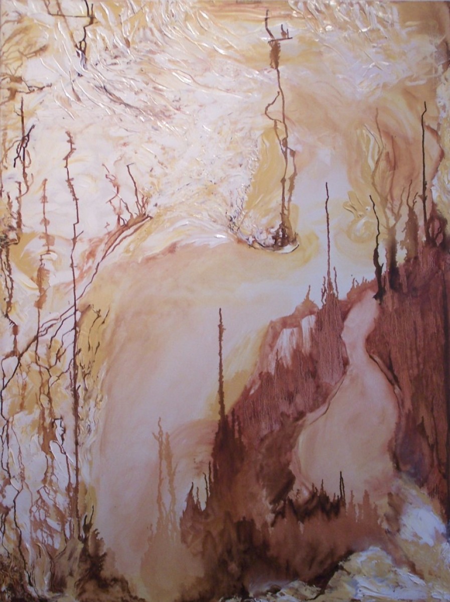 Mandara is an oil painter and pyrographer. She creates unique works on canvas and by applying a wood burning process to plywood she calls “painting with fire”. Her artistic style ranges from Expressionist to Surreal and features both the figurative and landscape. Originally from Montreal, Quebec, she attended Emily Carr University in British Columbia and holds a BFA from Concordia University in Montreal.